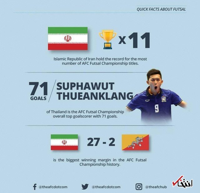 کنفدراسیون فوتبال آسیا، امروز (پنجشنبه) آماری از برترینهای ادوار مختلف جام ملتهای فوتسال آسیا را منتشر کرد. در این آمار که به ۱۱ قهرمانی ایران اشاره شده است، اشتباههایی نیز وجود دارد.